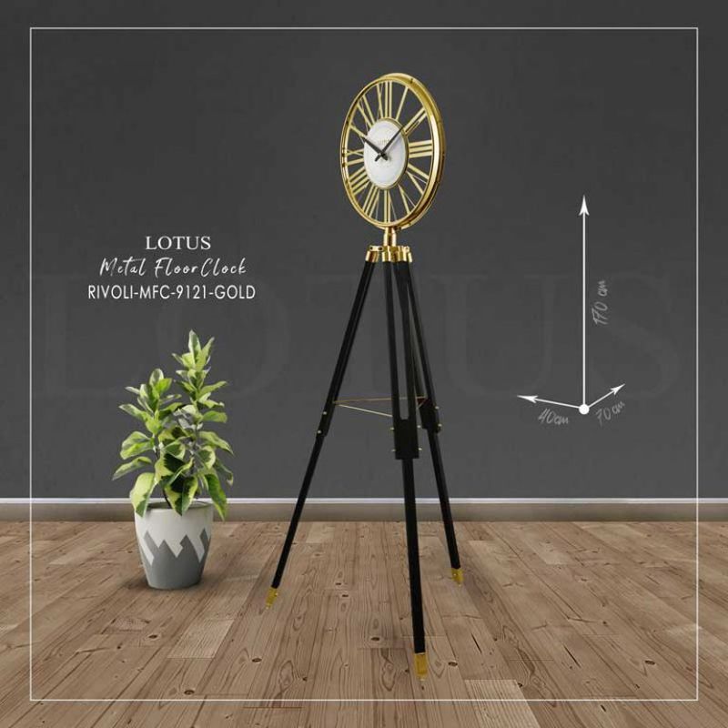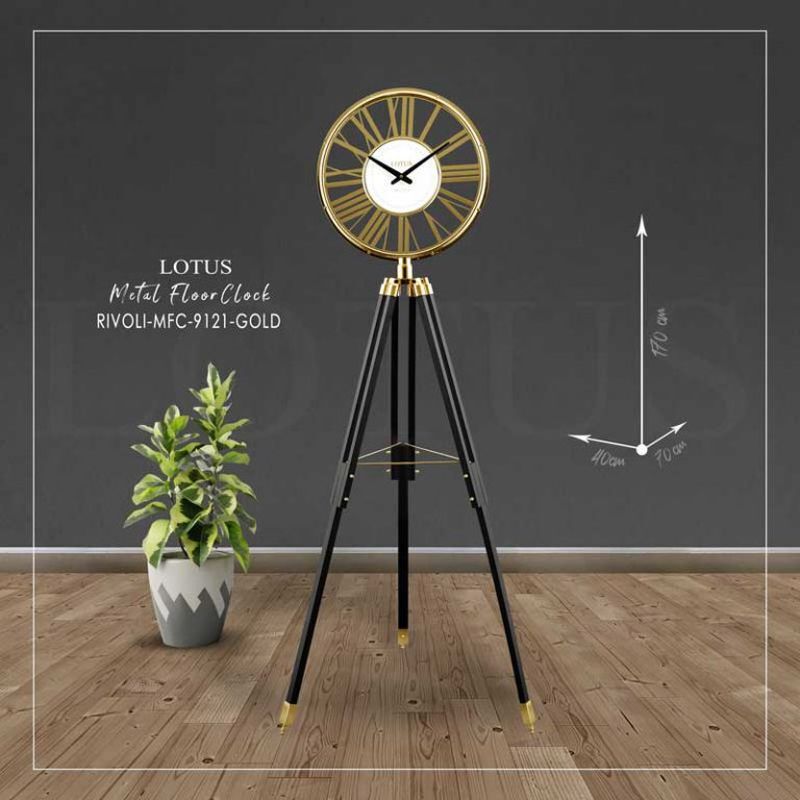 ساعت سه پایه ریوولی طلایی لوتوس MFC-9121-RIVOLI-GOLD ، یکی از شیکترین و خاصترین ساعتهای مدرن سالنی است که با طراحی مینیمال ، آبکاری زیبای طلایی و کیفیتی بینظیر، به فضای دکوراسیون شما جلوهای لوکس میبخشد.