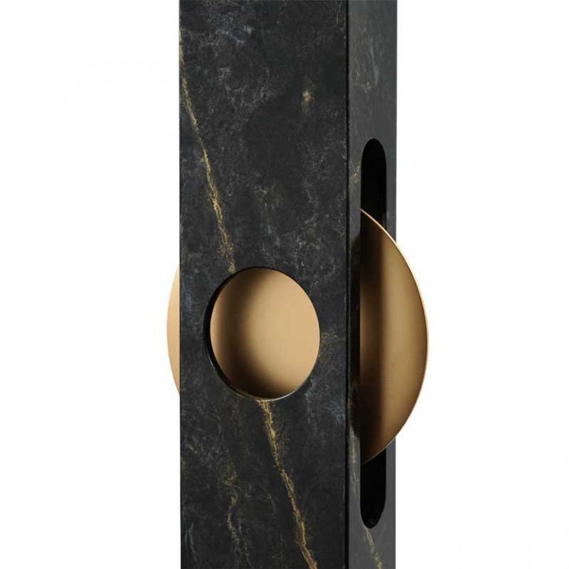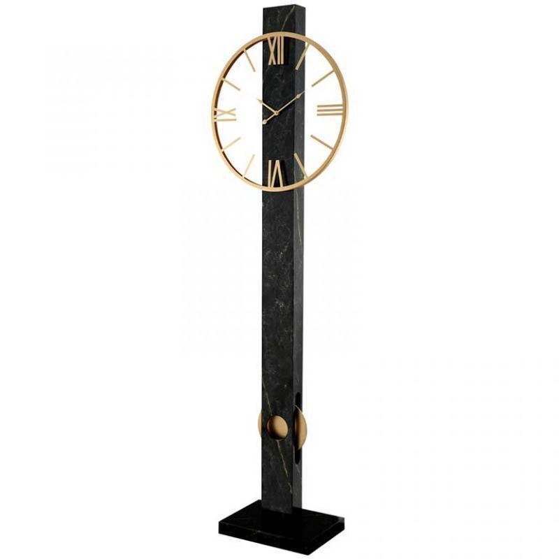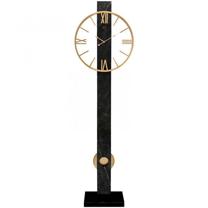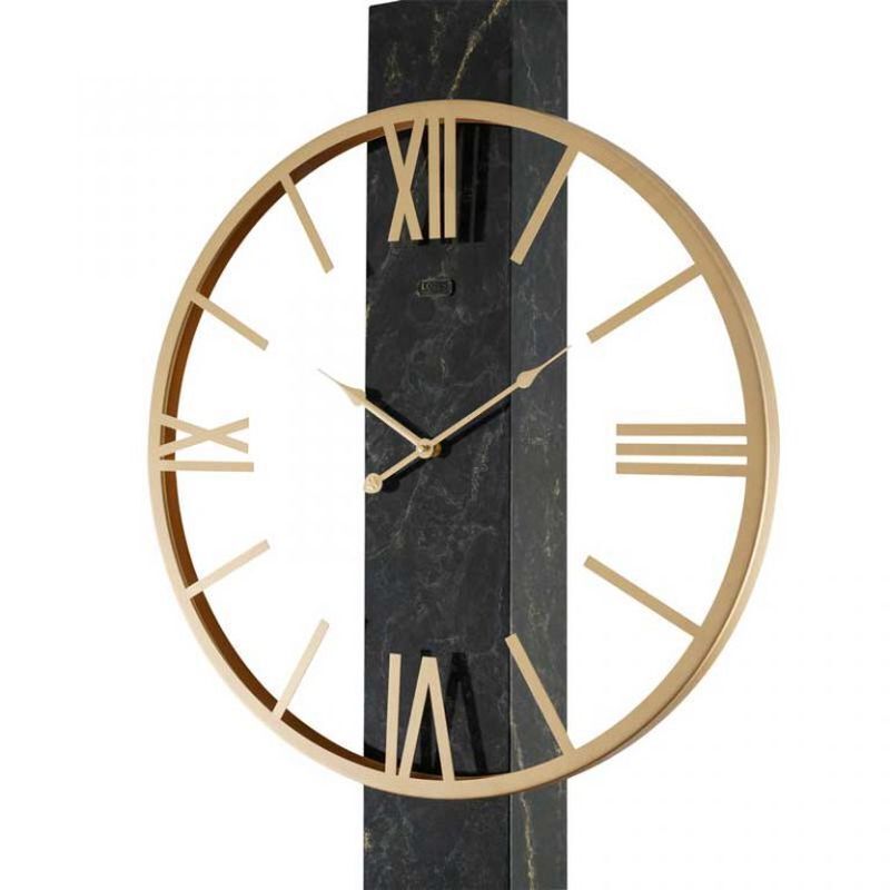 بدنه ستونی چوبی ساعت با بافتی شبیه به سنگ ماربل پتینهشده طراحی شده است؛ ظاهری سنگین و لوکس دارد، اما بدون وزن زیاد سنگ. این ترکیب هوشمندانه، هارمونی بینظیری میان چوب و فلز ایجاد کرده است.زمانی که باتری پاندول را نصب میکنید، حرکت آرام پاندول فلزی از میان حفرههای بدنه، جلوهای تماشایی و دلانگیز به ساعت میبخشد؛ تجربهای که هر بار نگاه به ساعت را به لحظهای دلپذیر تبدیل میکند.