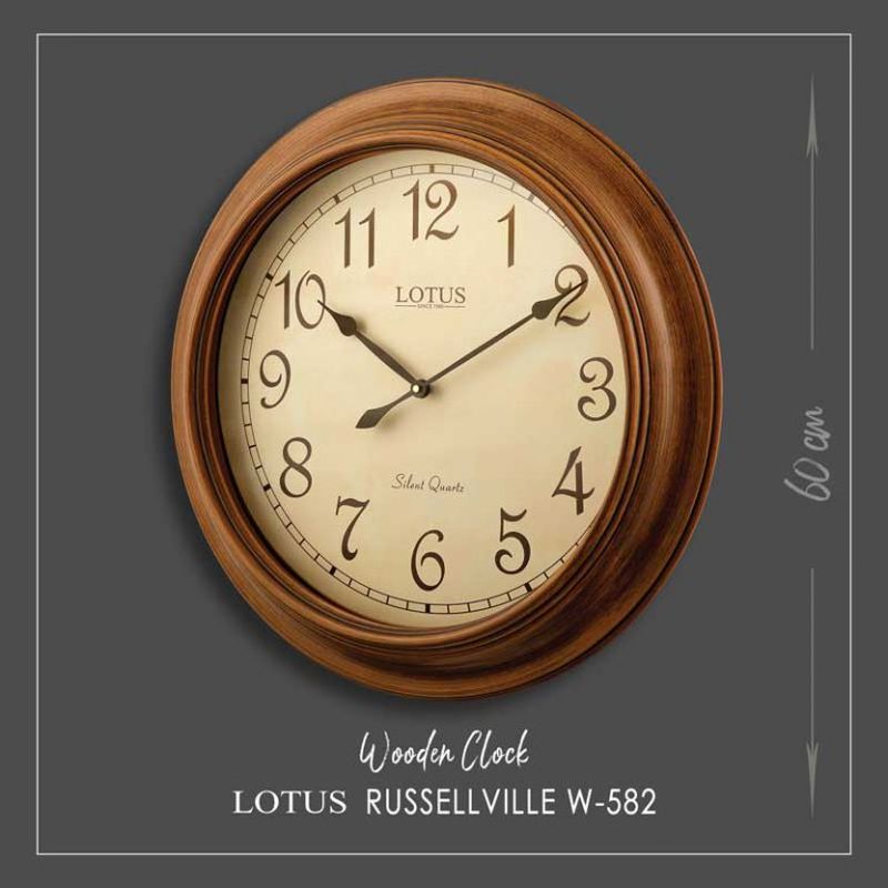 ساعت دیواری چوبی راسل ویل لوتوس مدل W-582-RUSSELLVILLE یکی از مدلهای خاص چوبی و جذاب برند لوتوس است که با طراحی اصیل و ساده خود، جلوهای ویژه به دکوراسیون داخلی میبخشد. این ساعت دارای صفحه ساده با ایندکس لاتین و عقربههای کشیده دنبالهدار است که در هماهنگی کامل با فریم چوبی قهوهای قرار گرفتهاند و ظاهری کلاسیک و هنری ایجاد کردهاند.