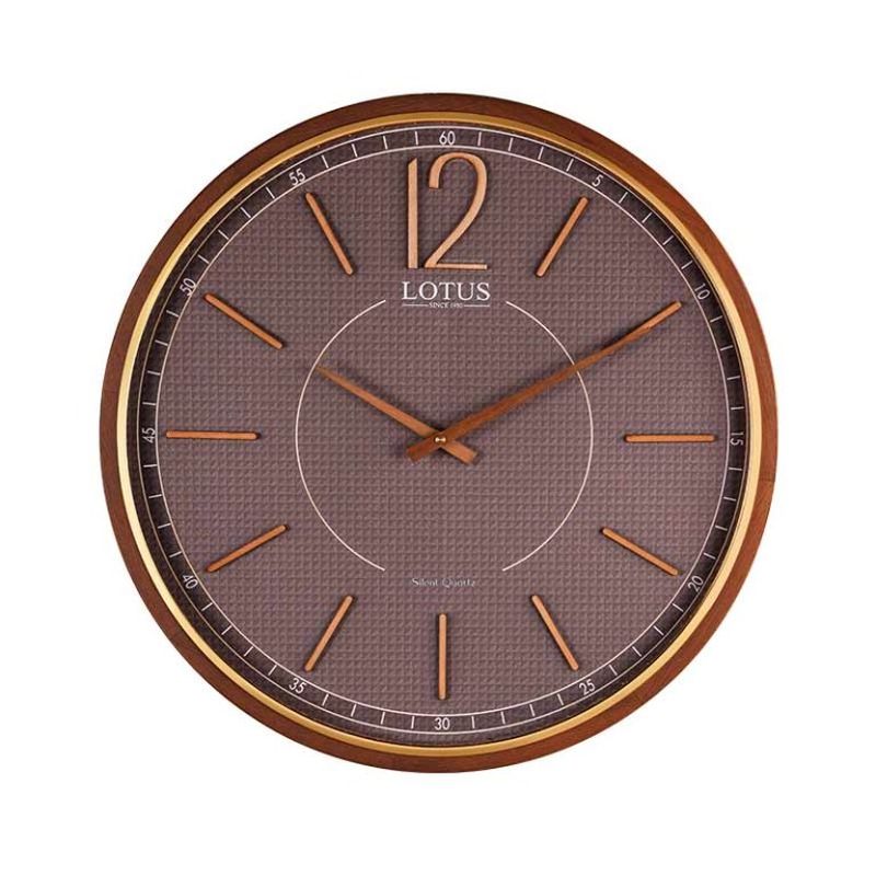 ساعت دیواری چوبی لوتوس مدل WD-1210-BRG/BR-LOTUS ، از کالکشن 2026 ،یک ساعت دیواری خاص با فریم چوبی مینیمال و متفاوت است . صفحه ساعت با بک گراند طوسی و اعداد برجسته زیبایی مدل را بیشتر نموده است . زه طلایی دور فریم در هارمونی کامل با طراحی متفاوت ساعت است .