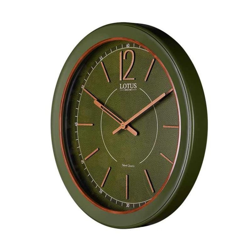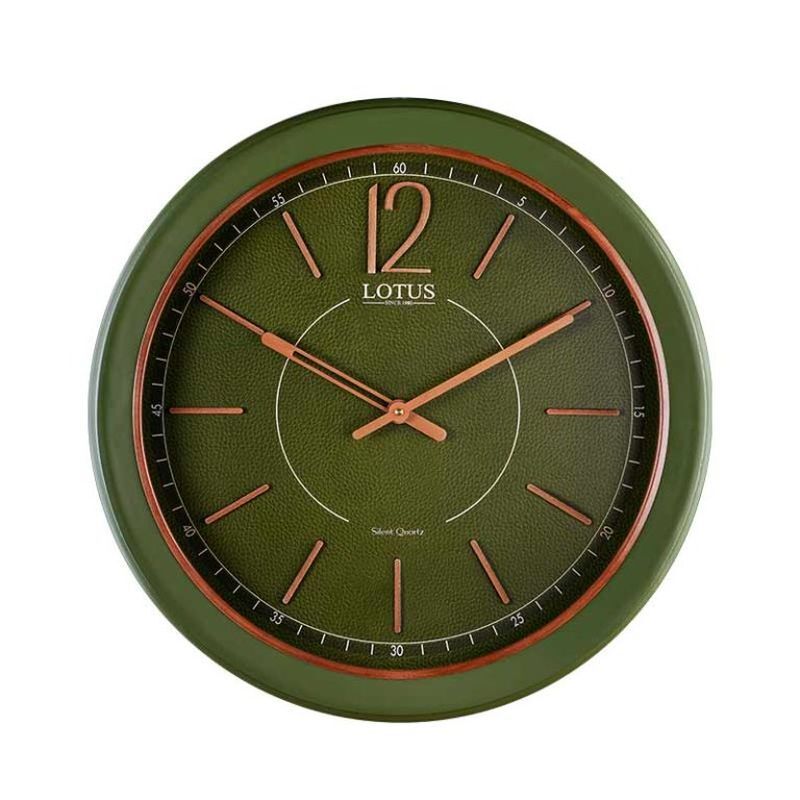 ساعت دیواری چوبی WD-1319-GREEN-LOTUS ، از کالکشن 2026 ،یک ساعت دیواری خاص با رنگ زیبای سبز است . صفحه زیبای ساعت با بک گراند سبز که حس چرم دارد و اعداد برجسته در ترکیب با فریم چوبی سبز زیبایی مدل را بیشتر نموده است . زه قهوه ای دور فریم در هارمونی کامل با طراحی متفاوت ساعت است .