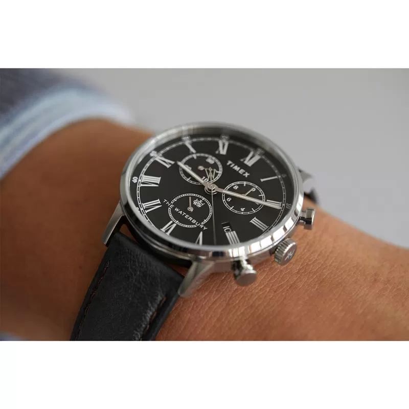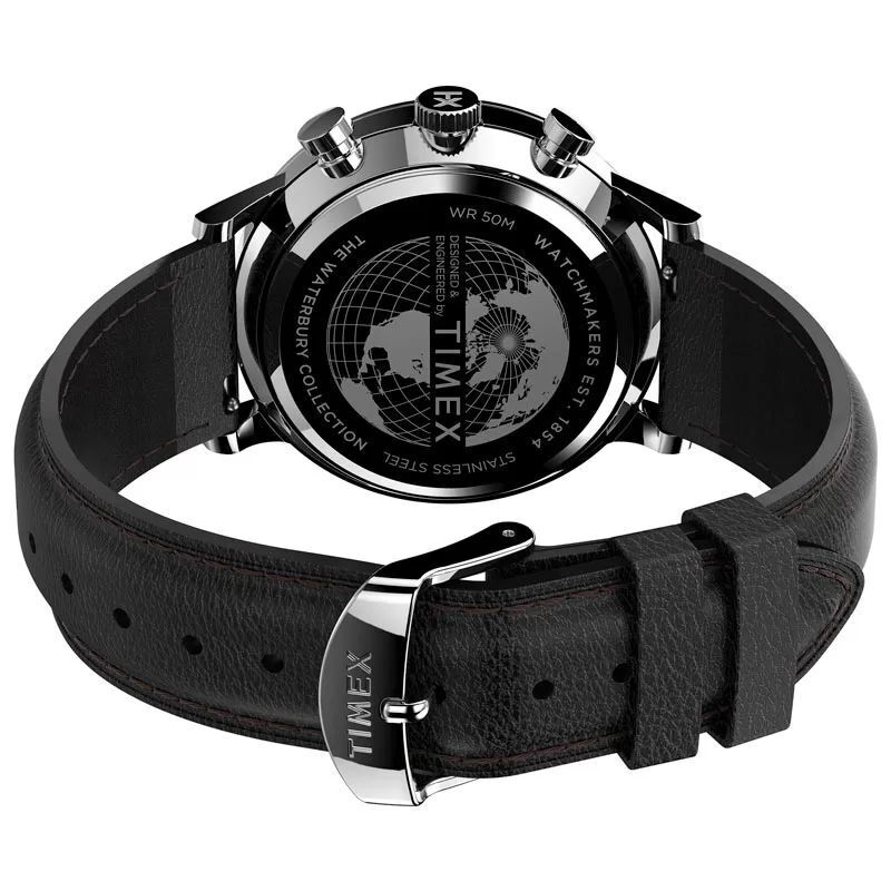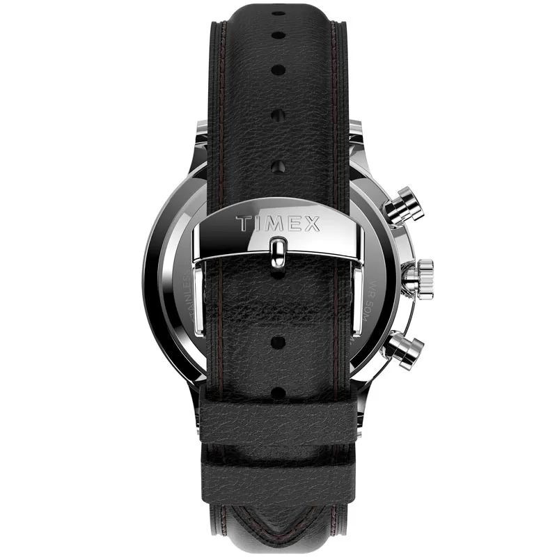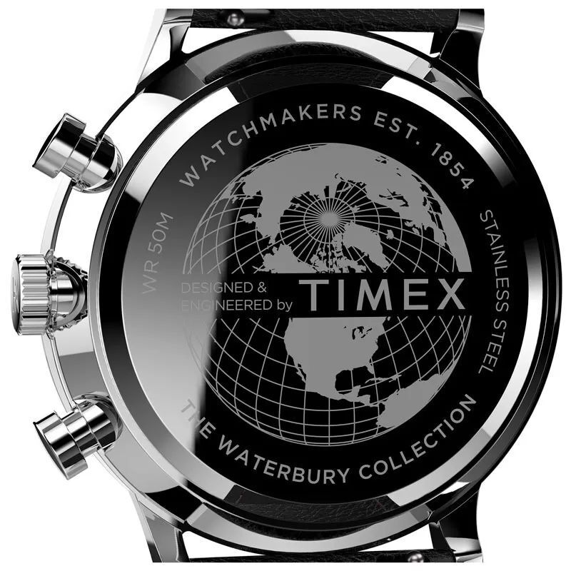 این ساعت، جلوهای از دقت در جزئیات و هنر ساعتسازی Timex را به نمایش میگذارد؛ از پرداخت دقیق سطح تا ظرافت در طراحی و ساخت ، همگی چشمگیر است .ساعت Waterbury Classic Chronograph با قاب استیل ضدزنگ، صفحهی مشکی کلاسیک با اعداد رومی، و بند چرمی مشکی طبیعی ترکیبی بینقص از زیبایی و عملکرد را ارائه میدهد.