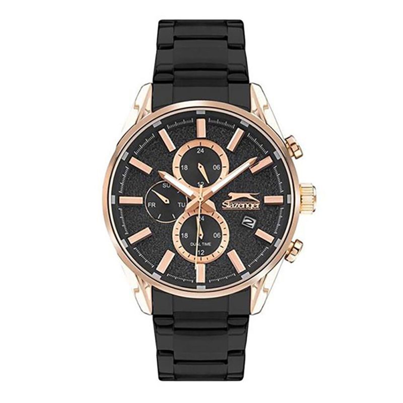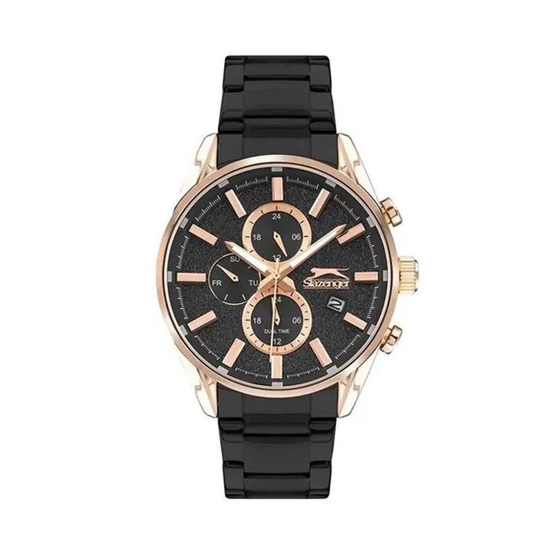 ساعت مچی اسلازنجر SLAZENGER مدل SL.09.2059.2.03 یک ساعت مردانه خاص مشکی رنگ با ترکیب طراحی اسپرت و جزییات چشمگیر است . این ساعت با رنگ چشمنواز صفحه مشکی و نشانگر های رزگلد ، جلوهای شیک و مدرن به استایل شما میبخشد.ترکیب رنگ جذاب مشکی و رزگلد ، مناسب برای استایل روزمره و رسمی است . صفحهی چندمنظوره (Multifunction) با نمایش تاریخ و عملکردهای کاربردی نیز این مدل را خاص و متفاوت کرده است .