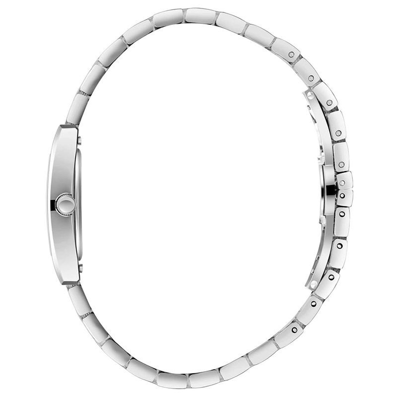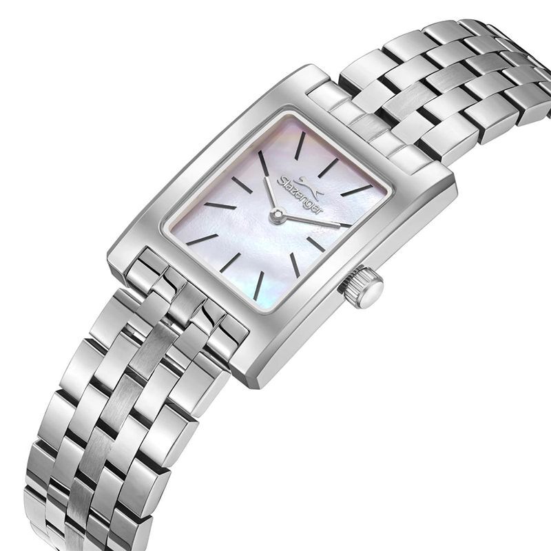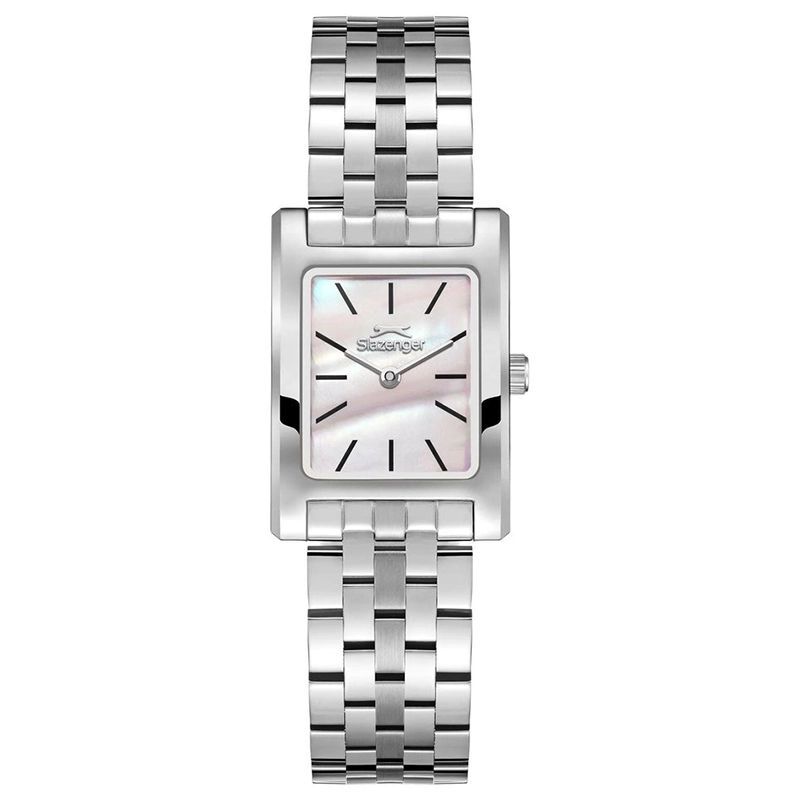 ساعت مچی اسلازنجر SLAZENGERمدل SL.09.2505.3.01 ،یک ساعت زنانه سیلور با صفحه مستطیل شکل است . ساعت از استیل (Stainless Steel) ساخته شده و رنگ نقرهای براق آن جلوهای خاص به مچ دست شما میدهد. صفحهی سیلور با نشانگر های خطی، ظاهری کلاسیک و ساده ایجاد کرده است. شیشهی معدنی مقاوم در برابر خط و خش نیز از صفحه محافظت میکند تا ساعت شما همیشه نو و درخشان بماند.
