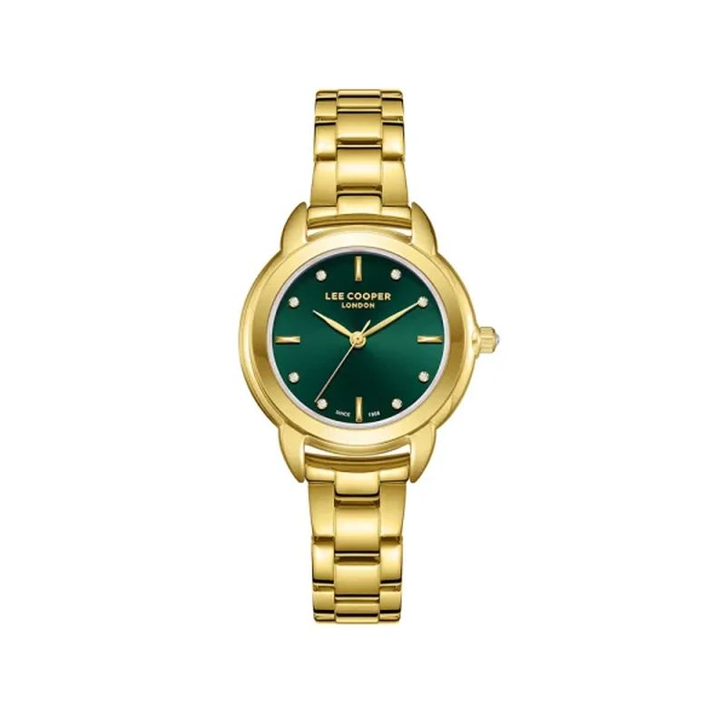 ساعت مچی لی کوپر Lee Cooper مدل LC08024.170،یک ساعت زنانه خاص با صفحه جذاب سبز رنگ برای افرادی ست که به دنبال ترکیبی از طراحی لوکس و مدرن هستند. این مدل با قاب طلایی ، بند طلایی و صفحه با نشانگرهای نگین الماس شکل ، جلوهای لوکس و زیبا ایجاد میکند.